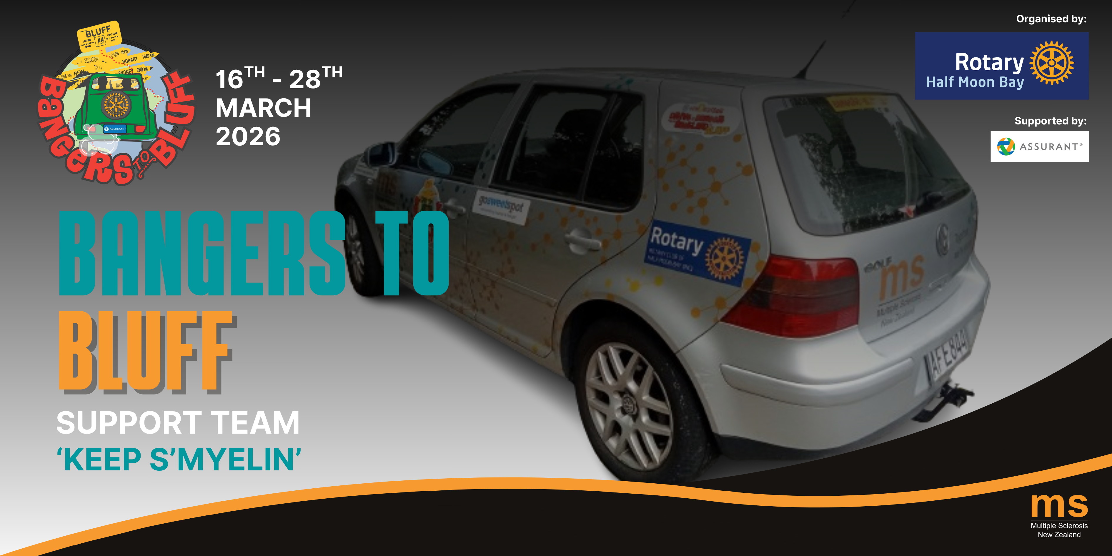 Support team ‘Keep S'myelin’ as they drive the exciting Bangers to Bluff Rally 2026 to raise awareness of the impact of multiple sclerosis.